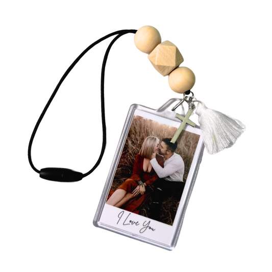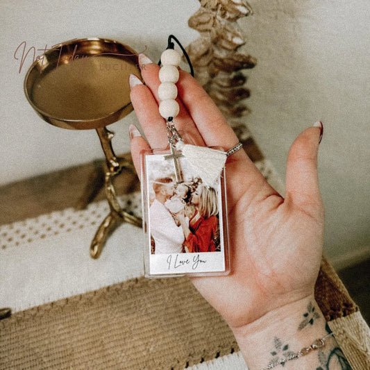 Personalized Polaroid Car Rearview Picture Hanger with text (Small Beads)